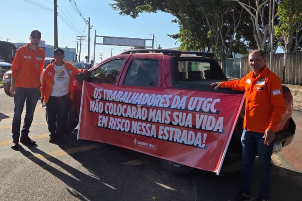 Os trabalhadores da Unidade de Tratamento de Gás de Cacimbas (UTGC), em Linhares, norte do Estado, realizaram nesta segunda-feira (27) um ato com paralisação parcial das atividades, para denunciar as condições precárias da estrada que liga a sede do município à unidade industrial. A mobilização foi organizada pelo Sindicato dos Petroleiros do Espírito Santo (Sindipetro-ES), e incluiu interdição da via, panfletagem e cobrança por providências imediatas do poder público.