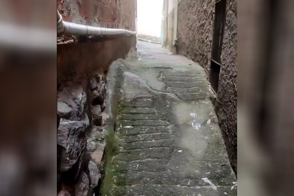 As imagens do local mostram um beco estreito, com piso irregular e uma descida acentuada formada por uma base de pedra coberta de forma improvisada com concreto. Não há corrimão, e o trajeto apresenta buracos e sinais de desgaste. Moradores apontam que a situação se agrava em dias de chuva, quando há formação de poças e o piso se torna escorregadio. Em alguns casos, relatam a necessidade de improvisar passagens com pedaços de madeira. “Tem idoso que já caiu duas vezes ali. Minha sogra, que tem mais de 60 anos, tem dificuldade para subir e descer. Não tem corrimão, não tem segurança”, descreve Patrick.