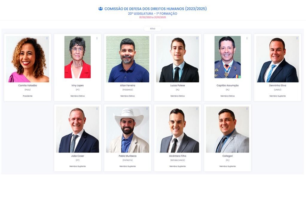 A comissão, formada no último dia 6, é composta por Camila Valadão, Iriny Lopes (PT), Lucas Polese (PL) e Capitão Asumção, titulares, tendo como suplentes Denninho Silva (União), João Coser, Pablo Muribeca (Patriota), Alcântaro Filho (Republicanos) e Callegari (PL).
