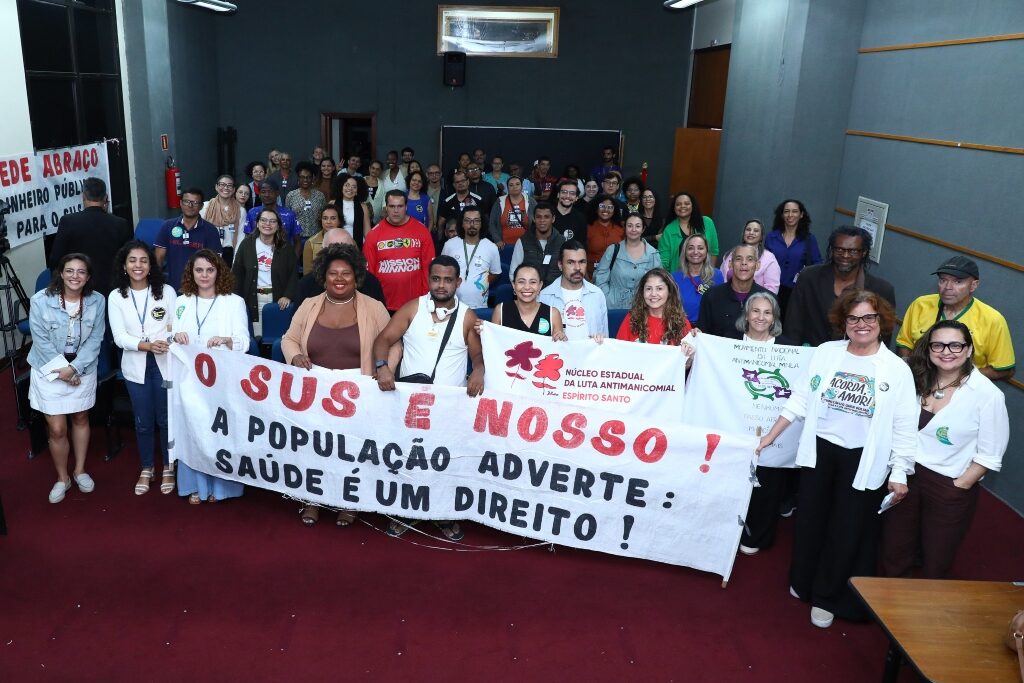 Antes do início das falas, a deputada Camila Valadão relatou que recebeu, nessa quinta-feira (9), uma notificação extrajudicial da Federação das Comunidades Terapêuticas do Estado do Espírito Santo (Fecotes), a respeito do evento e de falas da parlamentar nas redes sociais.